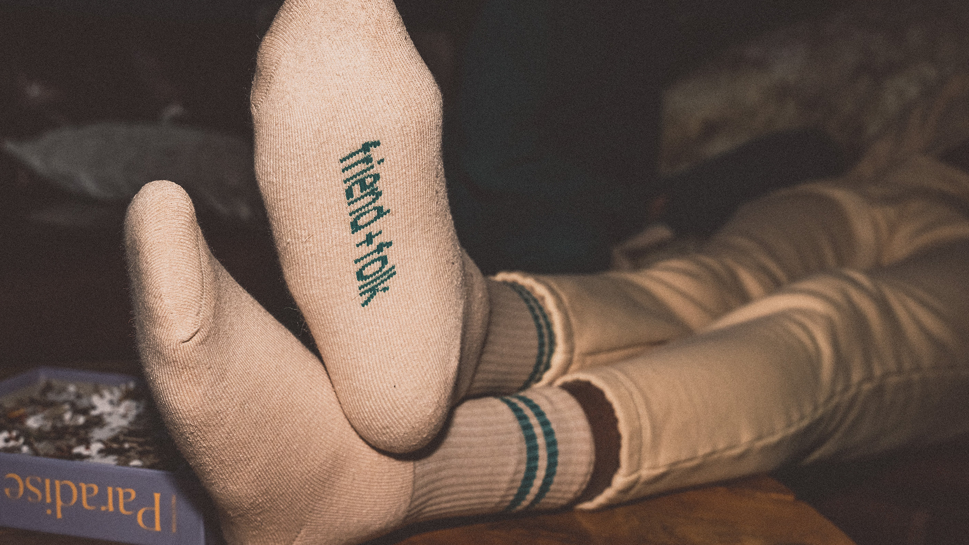 a premium tube sock for every body with the friend + folk logo knitted into the bottom of the foot. soft to the touch, they're found in two color ways -- empire, inspired by the streets of new york, and venice, for a walk down abbot kinney.